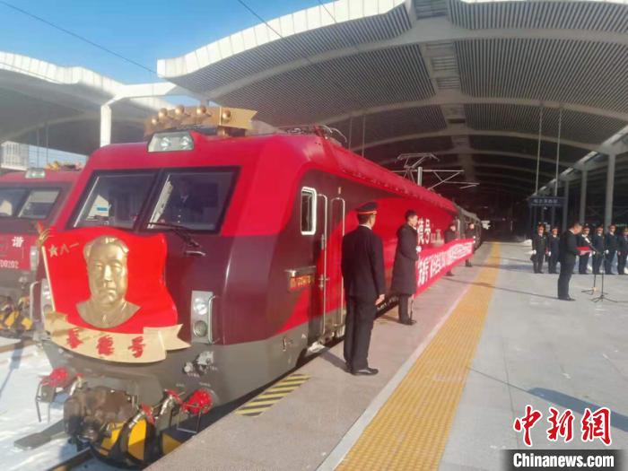 图为“朱德号”机车主题迎庆活动现场。 张学鹏 摄