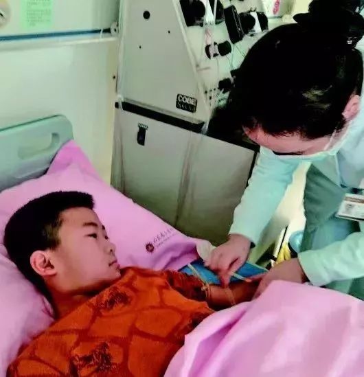 血细胞分离机嗡嗡作响,“救命种子”造血干细胞被一点点采集出来,马子彦始终安静地躺在病床上。中午12点左右,采集终于顺利结束,马子彦感到自己的胳膊微微发麻。想到爸爸或许不久就能康复,他又很开心。