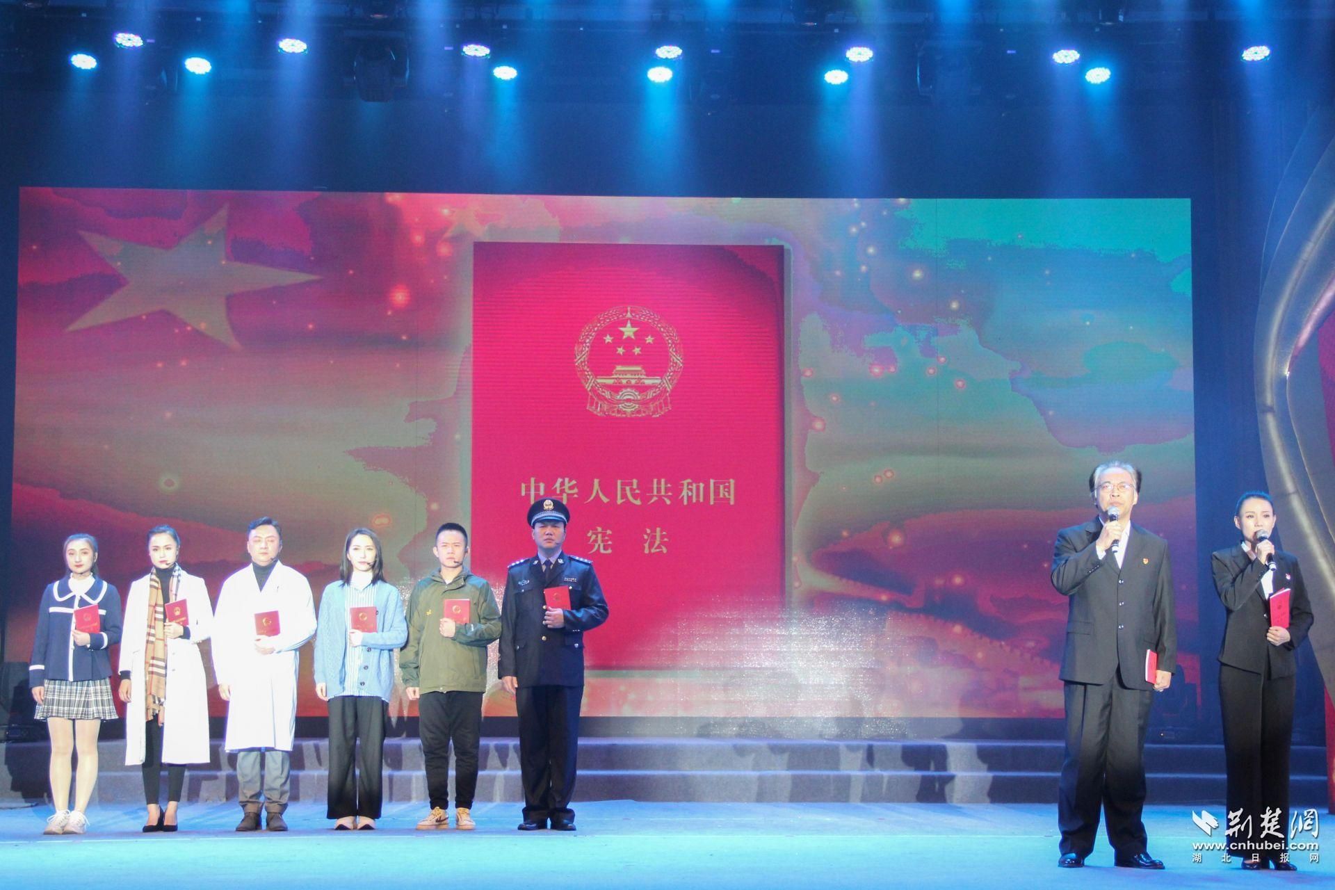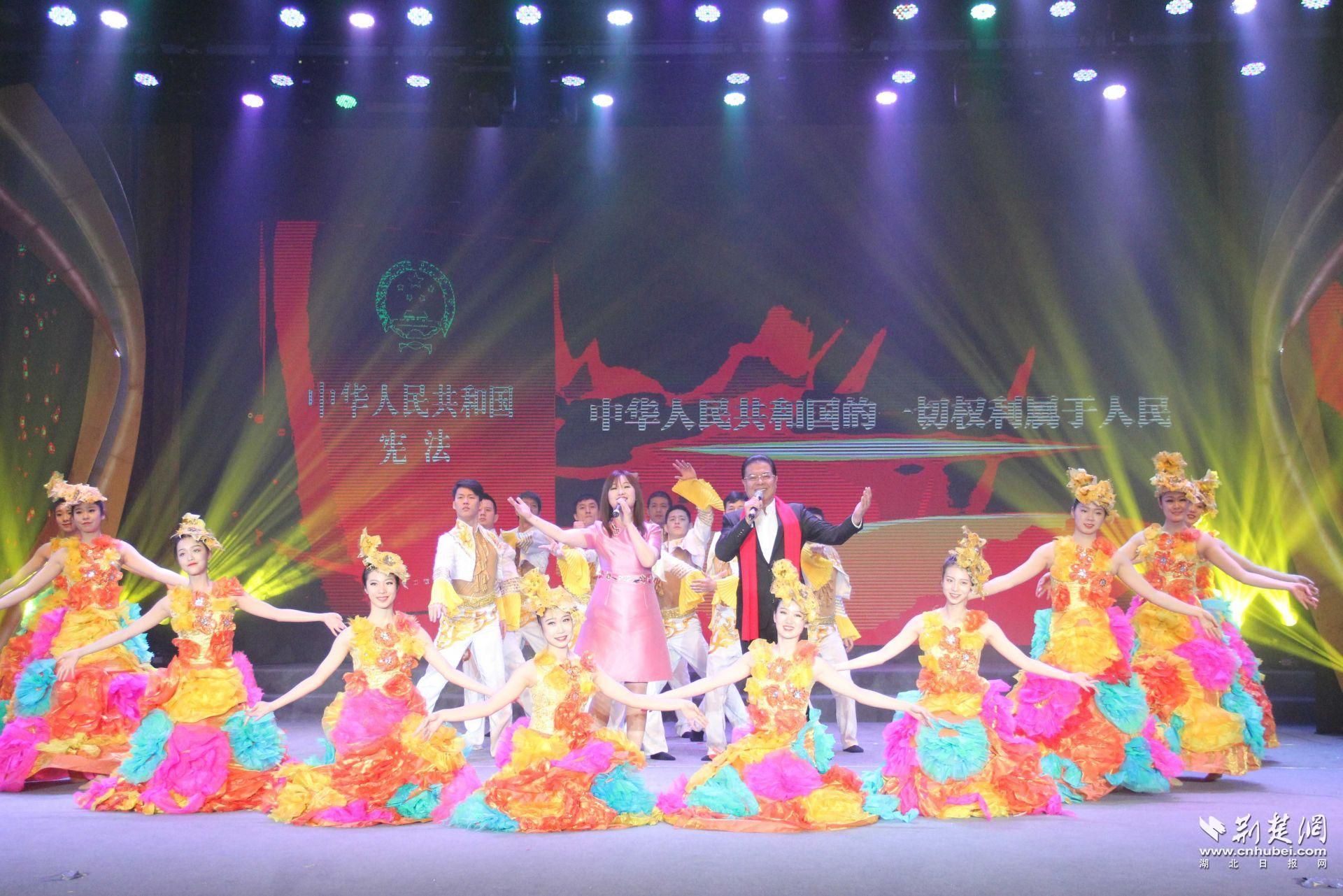 启动仪式在武汉工人文化宫举行。湖北省司法厅、武汉市司法局联合武汉市文化和旅游局为“宪法宣传周”启动仪式精心准备了一场法治文艺演出。歌曲《不忘初心》、情景朗诵《我宣誓》、小品《都是集资惹的祸》、湖北大鼓《酒司机》……一个个精彩节目赢得阵阵掌声。