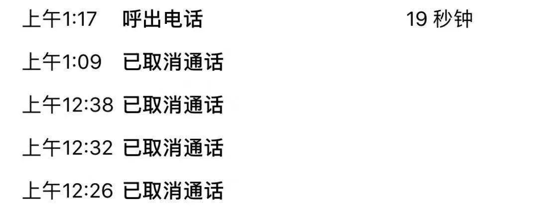 让她没想到的是,一直等到凌晨0:26,飞机落地已经近半小时,丈夫还没消息传来。从0:26到1:09,着急又担忧的李云海打了4个电话,居然一直是关机状态。