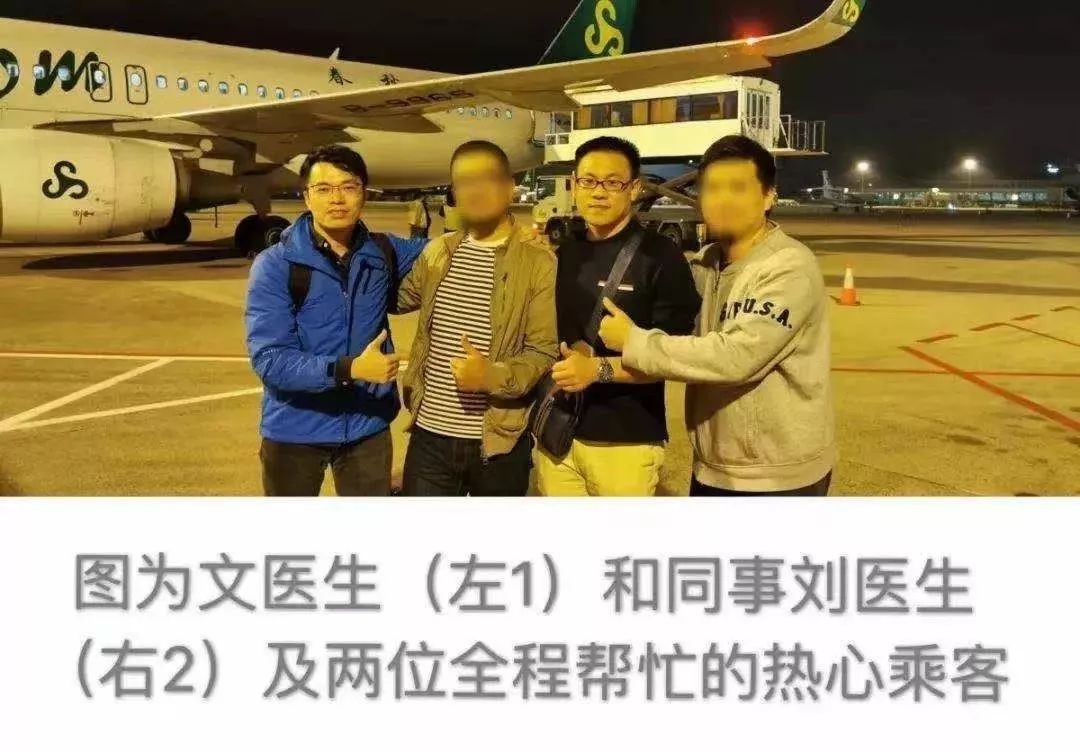文医生回忆,在航班上,他突然听见航班的机长在呼叫医生,称机上有乘客突发疾病,“我和同事刘通,没有一丝犹豫,第一时间响应,跑过去察看”。