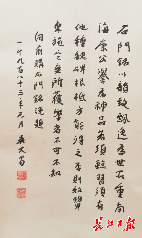 他身上深厚的文人风骨,被尊称为“践行屈原精神的诗人书法家”。当天的座谈会上,湖北省书协主席徐本一说,吴丈蜀先生的家国情怀和诗人情结令人尊敬。
