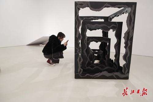 长江网12月2日讯(记者杨涛 实习生彭华 摄)12月1日下午 ,武汉创意天地佑品空间一场名为“佑品—又品 弱水微澜”的当代艺术作品展开幕,吸引了广大艺术爱好者和艺术院校师生们前往。展览呈现8位艺术家的装置作品以及团队活动的文献和视频 。