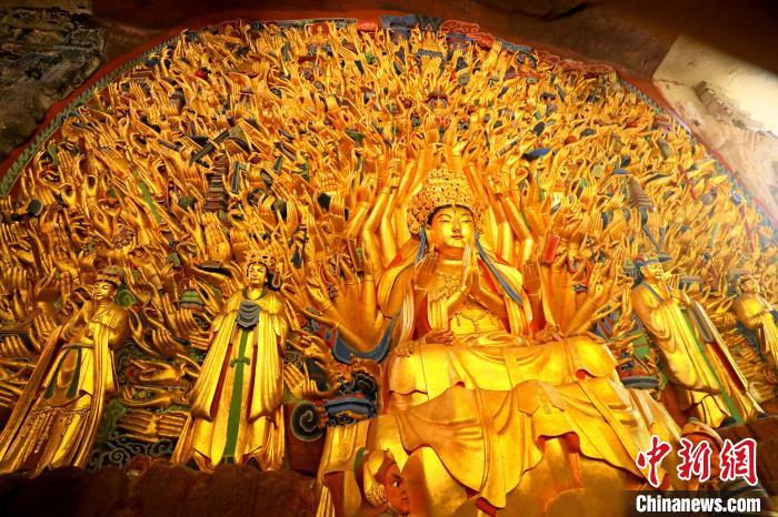 资料图为修复完成后的大足石刻千手观音造像。大足石刻研究院供图