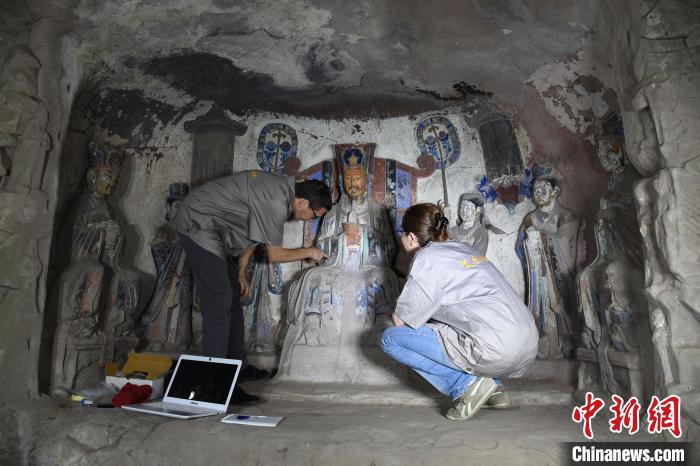 资料图为中外专家联合开展大足石刻修复保护研究。大足石刻研究院供图