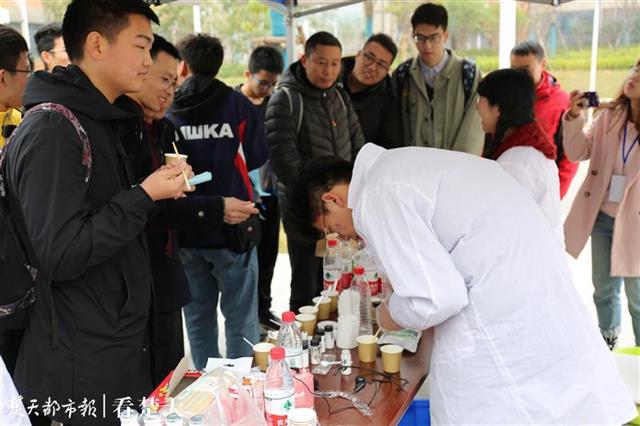 活动中,不少同学真实地领略身边的化学。饭后一杯沁香的奶茶,是不少人惯常的生活方式,但是大家感知味觉的时候却没有它的成分。“你不知道的乳饮料”团队,以矿泉水、食品级增稠剂、色素以及香精为原料,现场调制各色各样的奶茶,香味、口味完胜生活中的奶茶。团队负责人周丽媛表示,希望通过此次实验,引导大家从化学科学的角度辨别日常食品,比如,有的门店进行奶茶制作,往往并不是真正以纯牛奶和茶叶为原料制作而成,甚至还加入了劣质氢化植物油、乳化剂、香精、色素等添加剂以达到外观和口感上的要求,这些原料进入人体很容易产生有害物质,引发健康问题。本次活动希望大家把所学化学知识与生活结合起来,让科学走进大众身边,为实现更美好的生活努力。