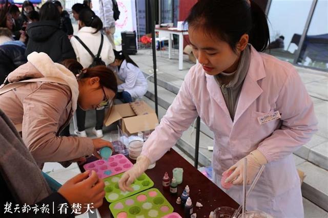 楚天都市报12月3日讯(记者肖杨 通讯员唐伟 陈文婷) “一杯矿泉水摇身成为草莓牛奶”、“自制护手霜”这样的精巧创意近日在中国地质大学(武汉)新校区上演,这是该校材化学院“Chemistry Show——身边的化学”年度秀活动,吸引数百名师生围观。