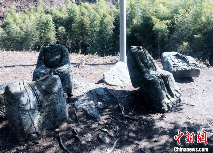 “从石像的风格来看,应当是福寿山寺明代重修时制作的神像。”湖南省文物考古研究所平江大湖坪遗址考古发掘项目负责人杨宁波介绍,该神像的头部与身体是分开制作,以榫槽相连接。缺失的头部可能是被盗走,也可能是因与身体材质不同而损毁。当地人回忆,20年前石像的位置在寺庙正前方,后来因旅游开发被转移到如今的高台上。