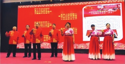 “四中全会真鼓劲,制度优越齐点赞……”12月3日,在江岸区吉庆商圈,民间艺人孙敬诚正用一曲湖北大鼓,唱响党的声音。一个多月来,在江岸区机关、社区、楼宇、园区、企业、校园、街巷里弄,总能看见特色宣讲队的身影,他们站稳政治立场,扎根一线,全方位全覆盖宣讲党的十九届四中全会精神。