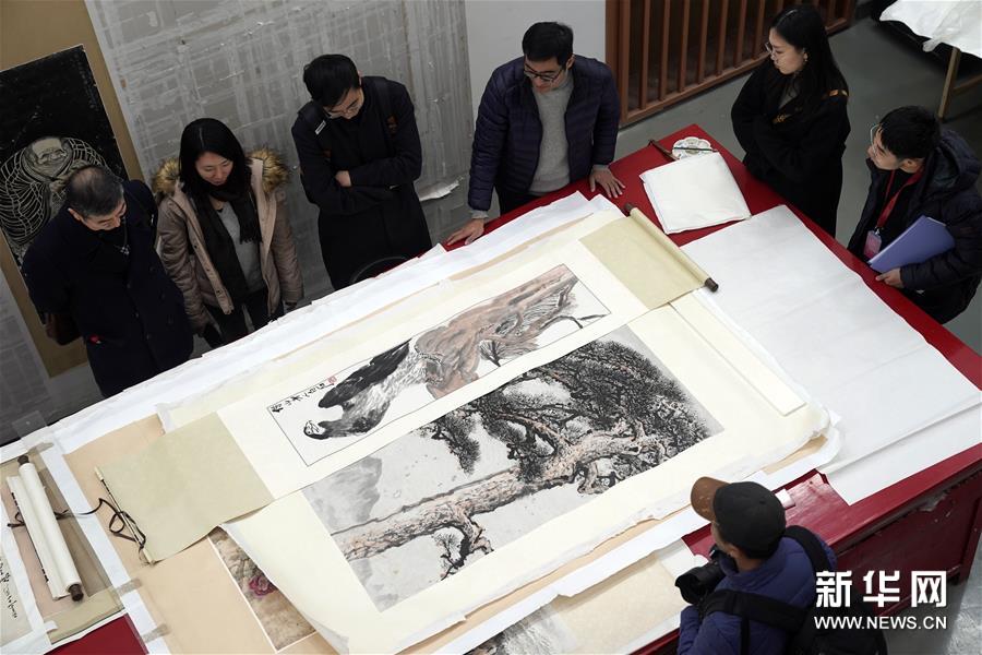 12月3日,文物修复师李郑(左四)在讲解传统书画装裱。新华社记者金良快摄