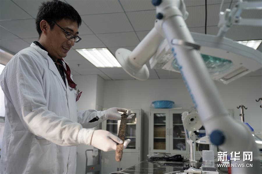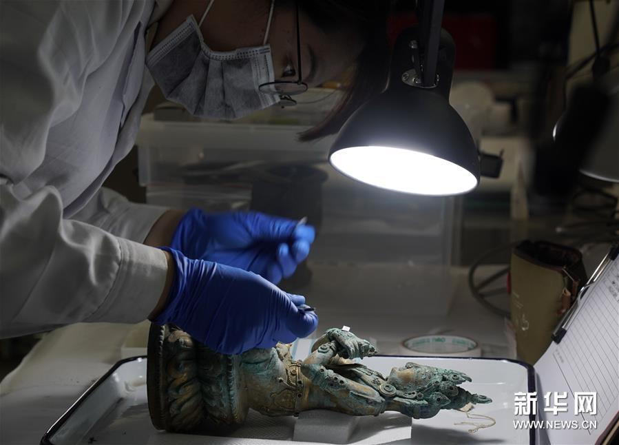 12月3日,文物修复师李沫在进行文物取样。中国国家博物馆文保院于2018年在原文物科技保护部与艺术品鉴定中心科技检测室的基础上组建,拥有40名文物修复师,下设环境监测研究所、藏品检测与分析研究所、器物修复研究所、金属器物修复研究所、书画文献修复研究所、油画修复研究所。文保院积极贯彻“保护为主、抢救第一、合理利用、加强管理”的文物保护方针,主要负责文物的保护、修复和复制工作,延续文物的历史价值、文化价值和科学价值。新华社记者金良快摄