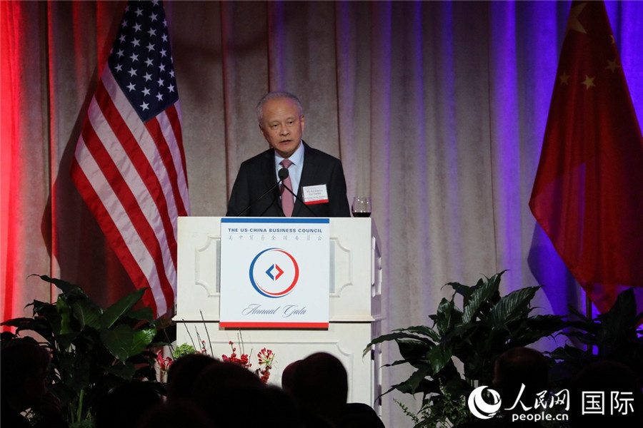 中国驻美国大使崔天凯在美中贸易全国委员会2019年度晚宴上致辞。吴乐珺摄