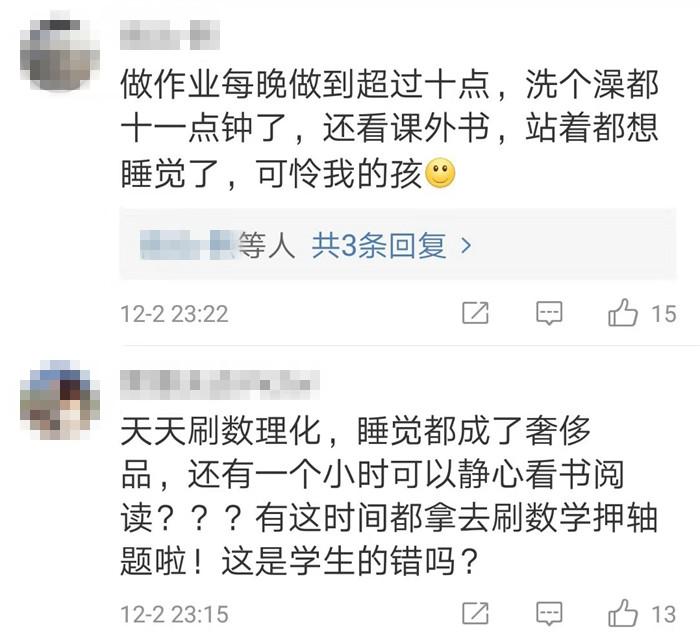 对此,有网友表示,“作业多呀,只要看的不是教辅书籍和中高考指定书目,就会被认为是在‘看闲书’,即使是世界名著。运动时间也不够,并不是孩子懒。”