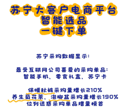 同时,苏宁大客户也针对企业福利采购,打造了双线采购平台,从商品供应链、系统搭建、物流配送、售后服务方面搭建了独立的B2B商用服务体系。如同“苏宁年终采购季数据报告”所言:“一键省心、极速省力、省钱有道”,正是苏宁为“大客户”所提供的采购解决方案。