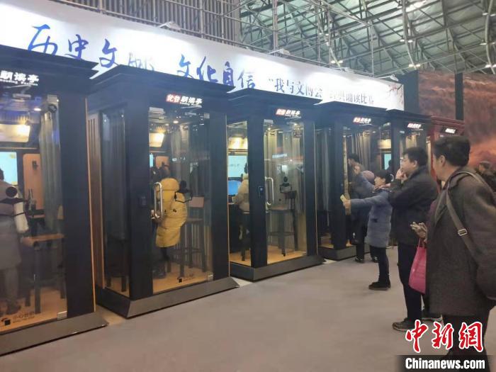 展馆内设置的6座朗读亭“现身”山西文博会,前来体验的民众络绎不绝。 杨佩佩 摄
