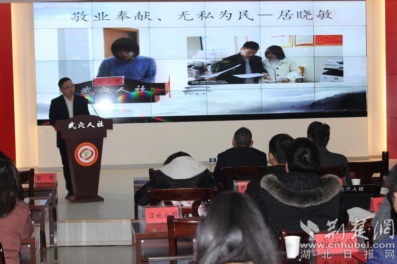 荆楚网客户端—荆楚网消息(通讯员 苏琳)“身边榜样事迹催人奋进,在今后的工作中我要向先进学习,争当服务标兵,敬业模范,抱着感恩、努力的态度,努力服务群众,做好本职工作……”12月5日,武穴人社局举办《道德讲堂》活动,该局窗口工作人员胡燕深有感触地说。