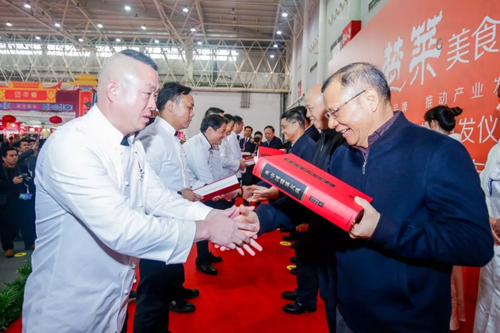 “千年楚馔史,半部江南食。”作为近年来湖北地区饮食文化研究的重要阶段性成果,展会开幕当天还举行了《中国楚菜大典》的首发仪式及赠书仪式。《中国楚菜大典》以楚菜为核心,通过翔实的史料,系统地梳理了近 3000 年楚地饮馔文明的辉煌文脉,进一步推进了楚菜和时代特色相结合,凝练楚菜文化特色,丰富楚菜文化内涵。