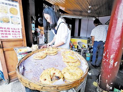 这一次,当我与几位朋友坐在古镇四方街上的一家小饭馆里,忽然想起要尝尝以前吃过、当地最有名的小吃——喜洲粑粑。它主要是用小麦粉、葱花、肉糜等制作,分甜咸两种,有点像北方的烧饼,鲜香可口。一边咀嚼着喜洲粑粑,一边看着窗外南来北往的游客,我的思绪也飞向了远方。