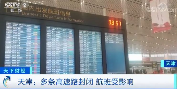同时,受天气影响,天津机场截至8点50分取消进出港航班38班,出港航班延误20班。