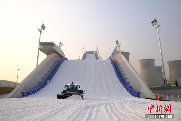 造雪负责人刘爽向记者介绍道,场地顶端的雪都是由压雪车一铲一铲地推到最顶端,爬坡过程中,除了车辆自身的动力,连接车辆以及出发点的绳索也会提供牵引力。大跳台斜面上的固雪网也能起到防止雪崩的作用。此外场地上的雪基本为比较硬的冰状雪,以此来避免长时间比赛后场地出现严重的不平整,影响选手发挥。比赛期间,也将会根据具体情况浇水、撒盐或干冰。