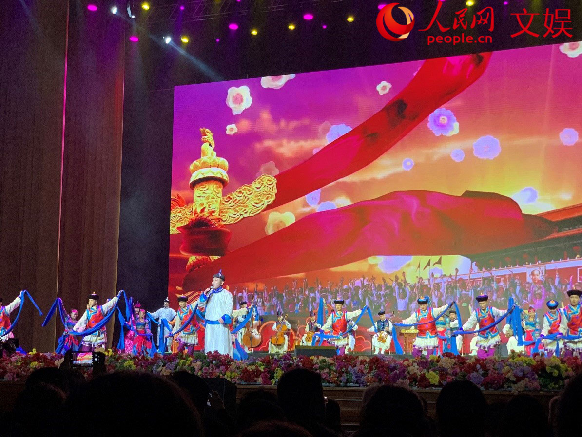 人民网北京12月9日电(刘颖颖) 12月7日晚,由内蒙古鄂托克前旗乌兰牧骑创作编排的音乐剧《石榴红了》在北京人民大会堂上演,现场有5000多名观众观看了演出。