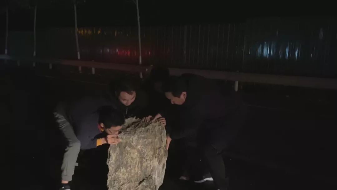 凌晨路遇大石头挡道他立即想到其他车辆安危12月5日凌晨
