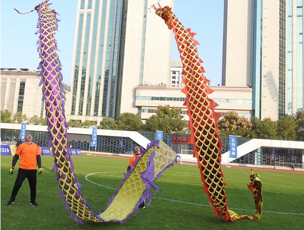 长江网12月10日讯(i记者李长林)12月8日下午,在江汉区汉口文体中心绿茵足球场上,武汉微马队员,在健身舞龙,美不胜收。