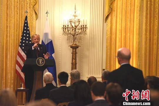 资料图:当地时间11月8日,美国总统特朗普在白宫表示,国会民主党不应该举行公开听证会。弹劾调查只是“通俄门”骗局的延续。中新社记者 陈孟统 摄