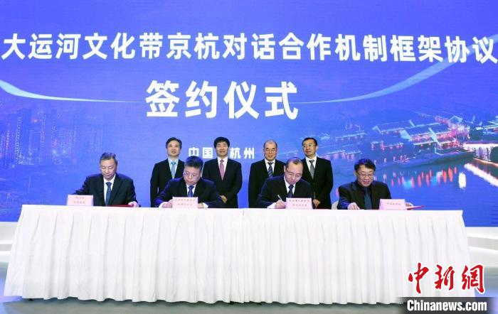当日,《北京市人民政府新闻办公室、浙江省人民政府新闻办公室、杭州市人民政府、中国新闻社关于大运河文化带京杭对话合作机制框架协议》正式签署,未来北京、杭州将每年轮流主办中国大运河文化带京杭对话,并带动京杭大运河沿线城市,扩大大运河文化遗产保护、传承、利用的合作共识。