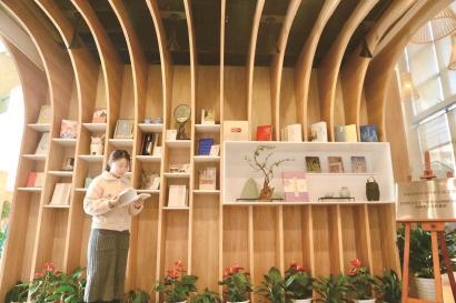 让记者印象深刻的是,读者一步入“知先堂”,就仿佛进入了一间“每一面墙壁都会说话”的新中式书房。借鉴江南园林的造景概念,这里实现了“一步一景”,尤其是一面高约八米的瀑布书墙,蔚为壮观。在“知先堂”内还设有江南非遗景观区,今后将定期展示不同主题的江南地域文化代表性文化产品。同时,中国传统物质文化景观区、中式书房景观区等展区的设立,也让学生感受浓郁的中华传统文化。