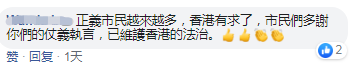 有网民则表示,正义市民越来越多,香港有救了,多谢仗义执言维护香港法治↓