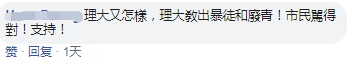 有香港网民表示,理大教出暴徒,市民骂得对,支持↓