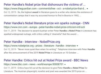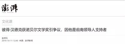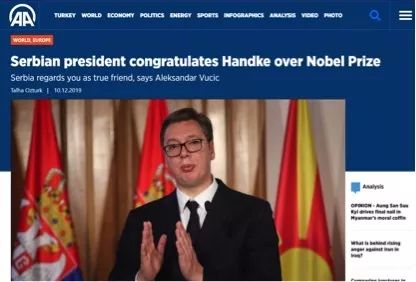 其实,在今年10月10日瑞典文学院将汉德克定为2019年诺贝尔文学奖的获得者之后,除了塞尔维亚之外的巴尔干半岛各国,以及不少西方媒体人,就已经对这个决定表达过“强烈不满”了。