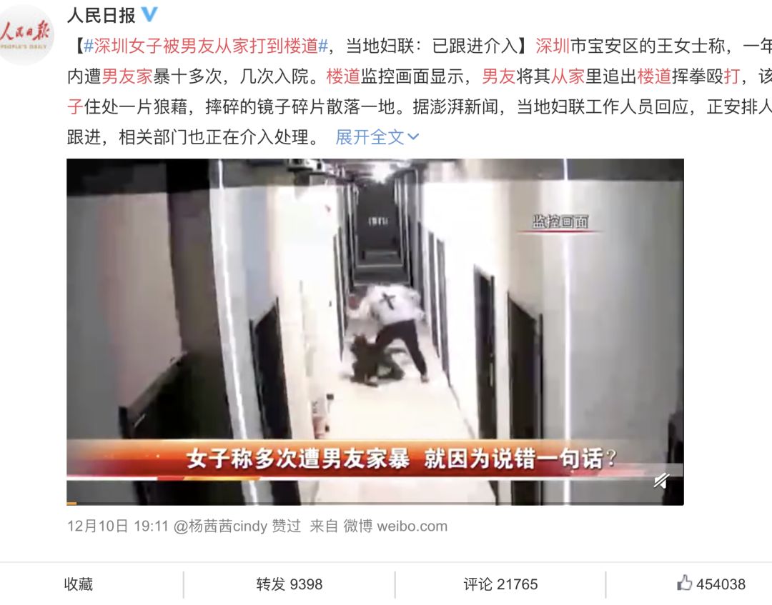近日,深圳电视台报道,来自深圳市宝安区的王女士一年内被男友家暴了十多次,并且几次入院。近期甚至被男友从家里追出楼道挥拳殴打。