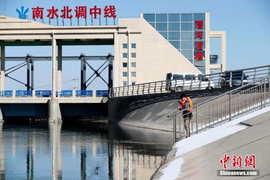 资料图:工作人员在漕河渡槽段为水质监测取水。中新社记者 富田 摄