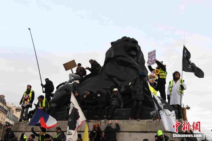 当地时间12月10日,法国遭遇新一轮响应大罢工的示威游行。大罢工已进入第六天,没有任何平息迹象。图为人们在巴黎市中心示威游行。中新社记者 李洋 摄
