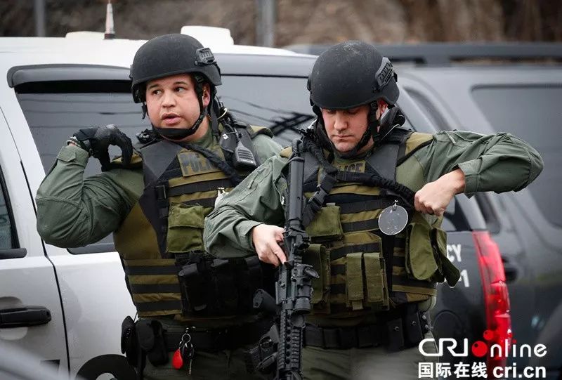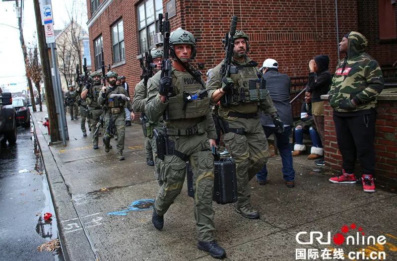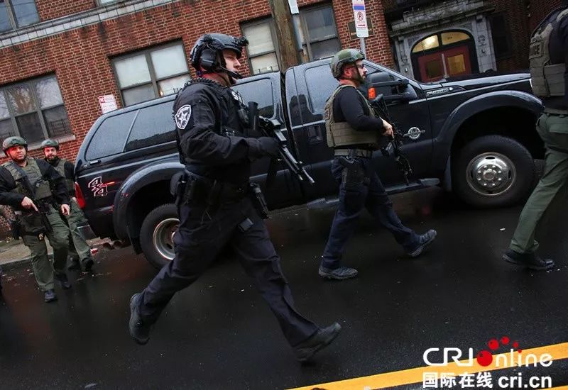 当地时间2019年12月10日,美国新泽西州泽西城,警察抵达枪击案现场。