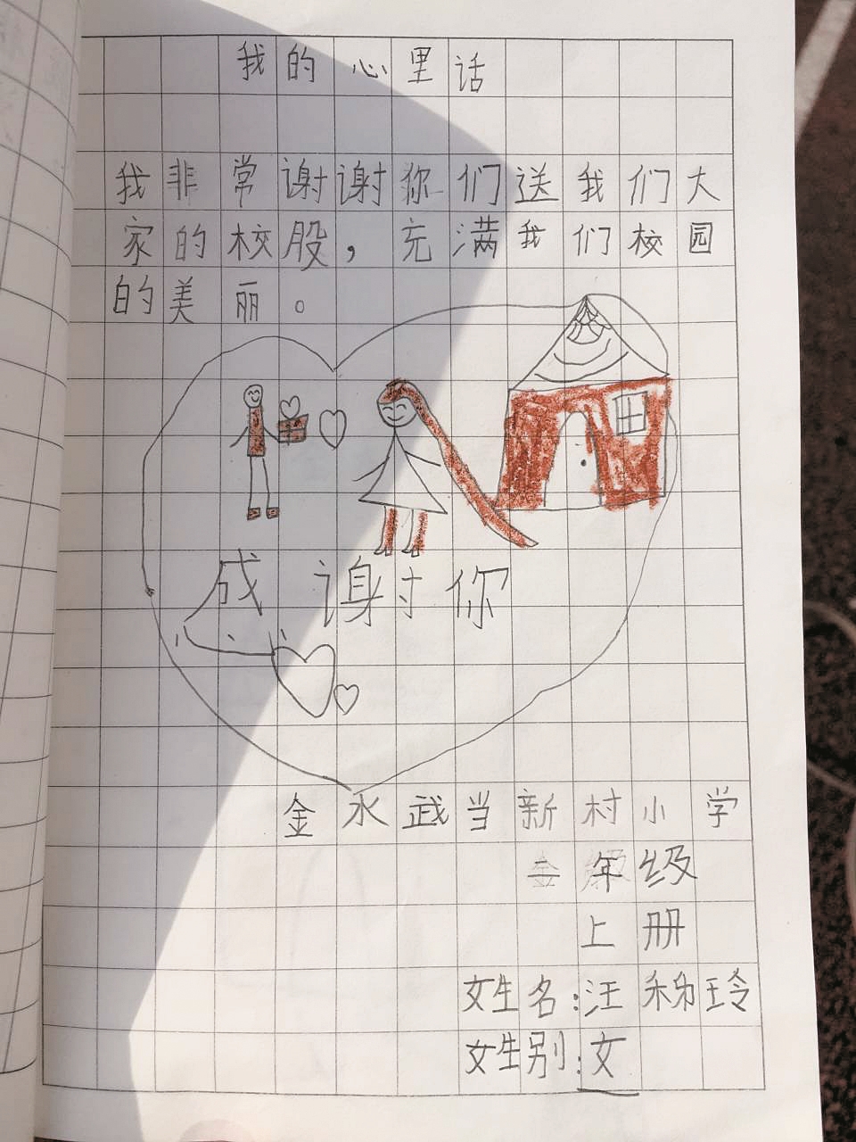 楚天都市报讯(记者张屏通讯员陈克茂郭子)昨日上午,武汉市最偏远的乡村小学之一、江夏区金水武当新村小学迎来爱心人士捐赠,穿上崭新校服的孩子们则回赠了一本独一无二的书——《孩子们的心里话》。尽管里面有许多拼音,好多字写得也是歪歪扭扭,甚至还有错别字,却依然令每个翻开它的人感动不已。