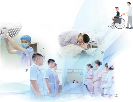 图③:男护士黄求进(左二)和同事一起进行护理查房。资料图片
