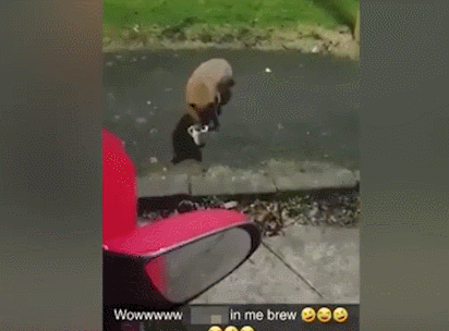 见此情景,莱恩大喊:“你这个小混蛋,离我的啤酒远一点。”然而,狐狸好像并不理会,突然翘起腿直接往杯子里撒尿,然后“大摇大摆”地走开。