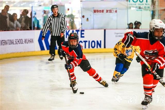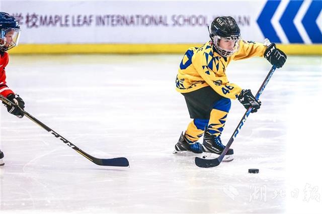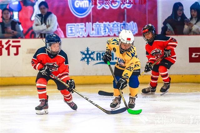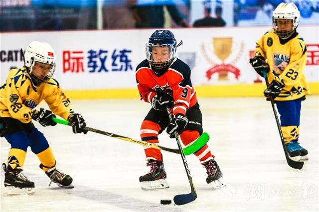 14日,2019年青少年冰球挑战赛(亚洲区)武汉站在武汉市众圆广场冰龙冰球俱乐部圆满收官。2019年青少年冰球挑战赛(亚洲区)武汉站是武汉首次承接高规格国际冰球赛事,由香港冰球协会主办、瑞典冰球协会协办、武汉冰龙冰球俱乐部承办,在为期两天的比赛中共吸引来自香港冰球训练学校、广州羊城闪电队、武汉育才小学队、武汉枫叶学校队、武汉冰龙俱乐部等队的近百名小球员参加,来自武汉的冰球少年展现出了过人一等的技战术能力最终在U8和U12两个级别中包揽了冠亚军。(湖北日报全媒记者时龚摄)