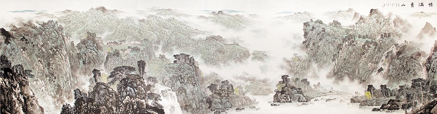 近年来,张军敢于画大画,善画大画,并且得心应手。湖北国画家中,一说到画大画,便想到张军。他画的丈二以上尺寸的大画,累计超过50多幅。他画的这些鸿篇巨制,还有部分是用四张丈二宣纸拼接起来,如《武当山》、《三峡大坝风光》等等。在这些作品中,有的是浩瀚的林海,有的是绿水欢歌的泉流,或山势雄险,峡谷幽深;或溪水奔流,林木森森;或云山千叠,气象万千。画面中,流露着对自然的敬畏和依恋,张军就是这样一位大自然的歌手。他与我省另一位国画家施江城合作的《高峡平湖图》,入选国家近代重大历史题材美术工程。画面中,江水浩渺,重峦叠翠,壮丽的江山图景,与宏伟的时代工程浑然一体,是近年来巨幅画作中少有的精品之作,此作品在国家博物馆“复兴之路”大型主题展上长期展出。