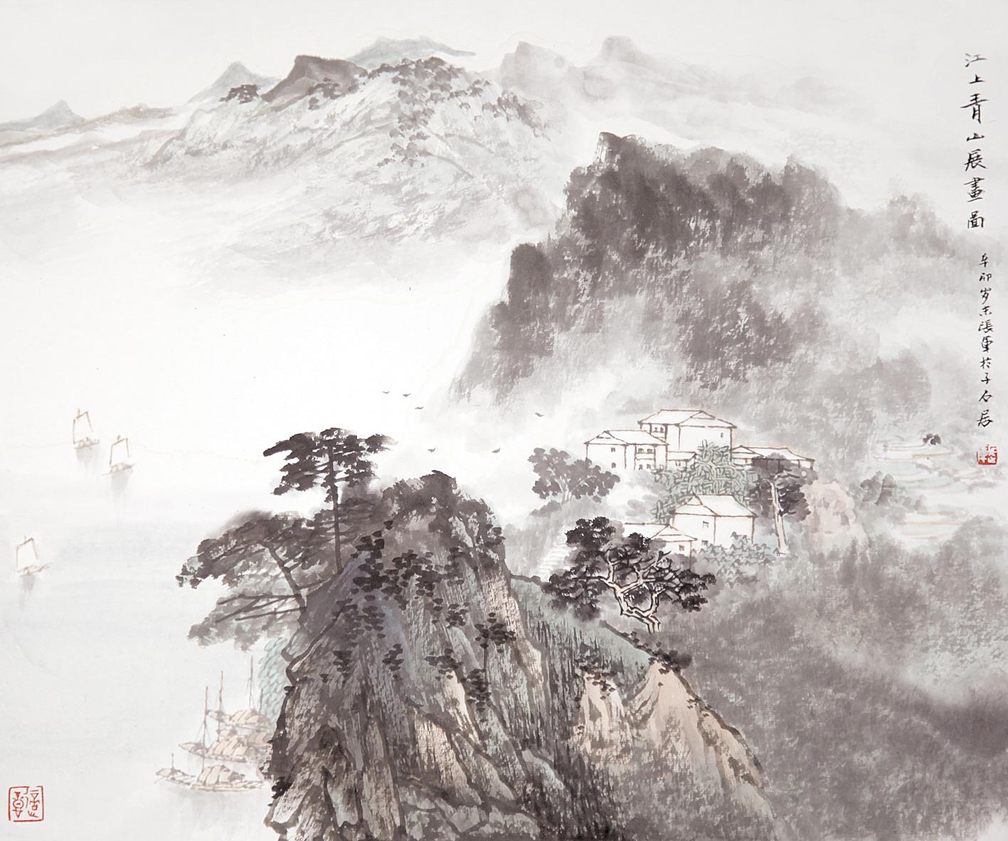 1984年,张军的作品《除夕图》,入围全国第六届美展被评为优秀奖,并收藏于中国美术馆。艺术之路上,初出茅庐便崭露头角,但他深知自己的不足,还需要学习与提升。于是,他考入湖北美术学院,潜心研究学习他喜欢的南方画派杰出代表人物,例如傅抱石、钱松喦、宋文治、周韶华等大家的山水画特点。他师古人,学前人,博采各家之长,抱真守朴,摒弃虚浮,追求山水画优美隽永的境界。