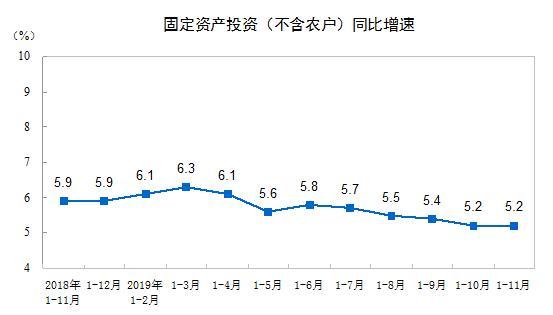 中新网12月16日电 据国家统计局网站消息,统计局16日发布2019年1—11月份全国固定资产投资情况。数据显示,2019年1—11月份,全国固定资产投资(不含农户)533718 亿元,同比增长5.2%,增速与1—10月份持平。从环比速度看,11月份固定资产投资(不含农户)增长0.42%。其中,民间固定资产投资303786亿元,同比增长4.5%,增速比1—10月份加快0.1个百分点。