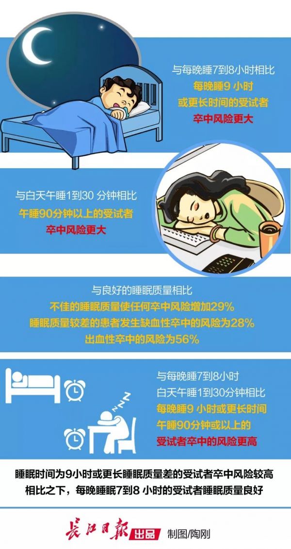 “睡眠超过9小时的人,与睡眠时间七八个小时的人相比,中风风险增加了23%。”