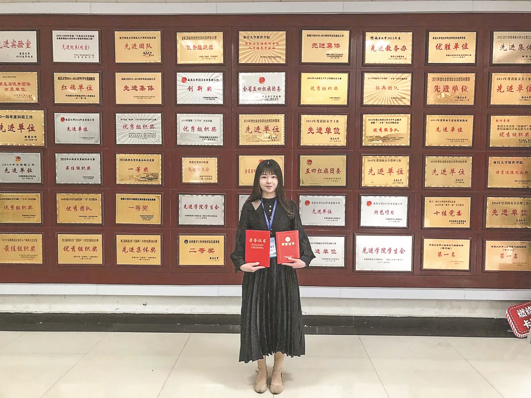 技术过硬是应聘成功的关键。除了课堂学习,吴珊还自学熟练掌握了当前热门的企业开发框架等课外知识。她以第一作者发表了三篇学术论文,以第一发明人身份申请了三项实用新型专利,获得三项软件著作权,带领团队参加多项比赛,获得了14个国家级、省级奖项。作为湖北大学713实验室的负责人,她曾参与智慧旅游系统等多个项目的开发,实践经验丰富。