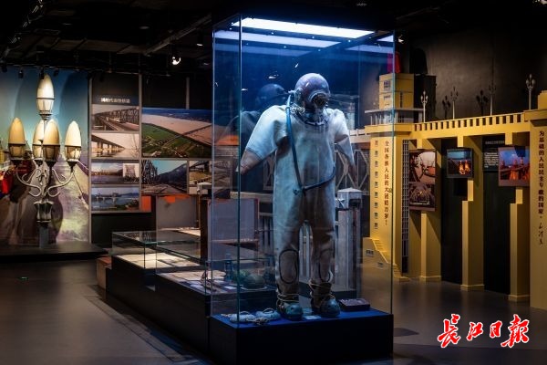 中国近现代桥梁展区展出胡宝玲穿过的潜水服 记者任勇 摄