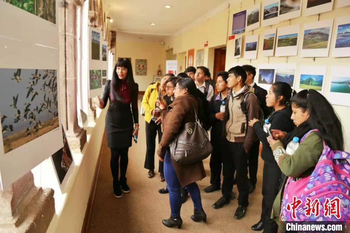 图为代表团向库斯科群众讲解图片内容。 钟欣 摄