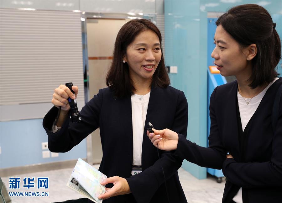 12月19日,罗灏芝(左)在澳门黑沙环政府综合服务中心接受采访。新华社记者 李钢 摄