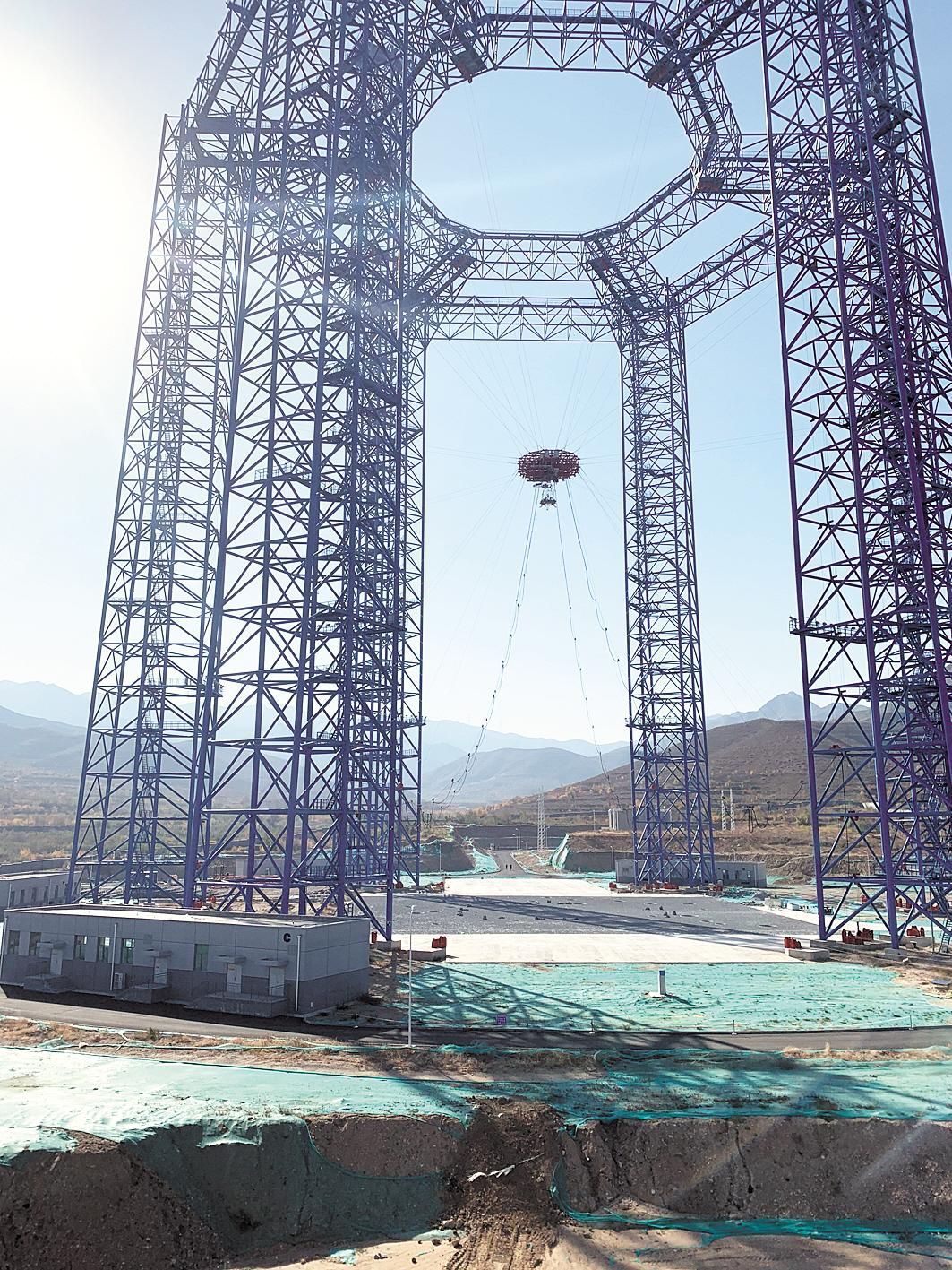2019年6月,试验场6个钢结构塔架拔地而起,与之相匹配的18套绞车设备、36根钢丝和700余组导向轮,以及相关配套电缆、电气设备设施的安装工作接近尾声。